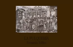 Este es un libro objeto que se abre a manera de biombo. En los seis murales de papel (cada uno de 4 x 2 m) que componen La Pulquería, vemos jocosos y admirados, el encuentro de calaveras que se avienen de manera natural y se dan cita en el lugar donde se expide y se consume la baba sagrada.
